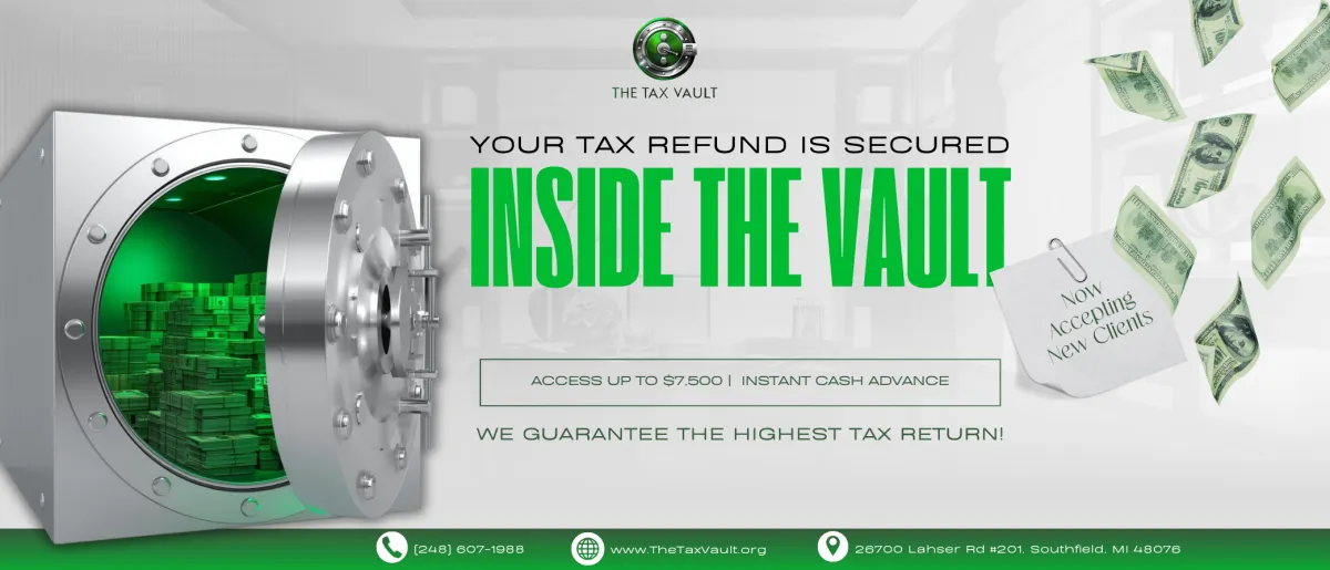 Don’t wait weeks for your refund—ask about advance options available through The Tax Vault.